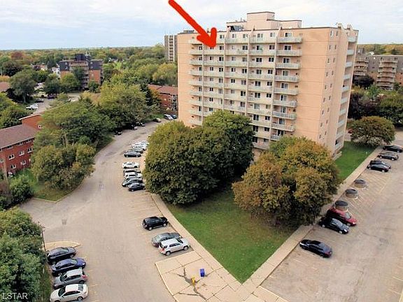 1 bed unit on the 10th floor at "Sunrise Condos" with big balcony (gas BBQ's allowed). South views from the bedroom and balcony. Family friendly neighborhood, surrounded by mature trees and green space, walking distance to all the great shopping at the corner of Oxford and Highbury. Bus stop at property entrance. Massive renovations underway in this complex; new windows, patio doors and balcony railings already installed. Laundry rooms are now renovated. New hallway flooring, lighting and painting is almost complete. Building entryways and lobbies in 573 & 583 are in the process of being completed. See building 563 for the finished look! Property tax is $1105/yr. ALL-INCLUSIVE Condo fee is $320/mth includes heat, hydro, water. One parking space.