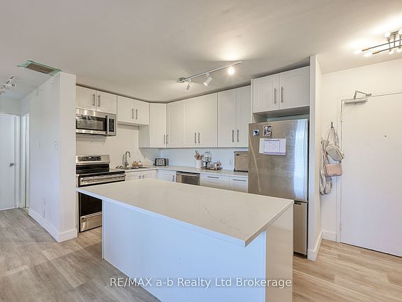 Welcome to 563 Mornington Avenue, Unit 510 an affordable and stylishly renovated 2-bedroom condo. Step inside this bright 5th-floor unit and you'll immediately notice the modern updates. The kitchen has been renovated for a more spacious, open-concept design. Featuring upgraded tall cabinets, quartz countertops on the island, all new appliances, and stylish light fixtures, this space is ideal for both cooking and entertaining. Updated flooring, fresh baseboards, and a renovated bathroom vanity add to the move-in ready appeal.Condo fees cover everything heat, hydro, water, and parking meaning there are less monthly utility bills to worry about (Internet and Cable are extra). Laundry is conveniently located in the building with a refillable laundry card system. Located close to Fanshawe College, shopping, and transit, this property is a great option for students, first-time buyers, or anyone seeking a low-maintenance lifestyle. With tenants vacating November 1, possession is flexible, and you'll enjoy immediate peace of mind with no rental equipment to assume.
