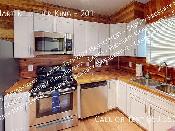 Modern 2BR/1BA Apartment | Renovated Finishes | Prime Downtown Lexington Location Welcome to 563 Martin Luther King Blvd #201, Lexington, KY 40508 a beautifully renovated 2-bedroom, 1-bathroom apartment offering 692 sq. ft. of stylish living space in the heart of downtown. This thoughtfully designed home combines modern upgrades with timeless charm, featuring energy-efficient comforts and a location that puts you steps away from Lexington's best dining, shopping, and entertainment. Key Features & Upgrades Spacious Layout: 2 comfortable bedrooms with ceiling fans and ample natural light Flooring: Bamboo hardwood flooring throughout, with easy-to-maintain tile in the bathroom Kitchen: Fully equipped with stainless steel appliances (refrigerator, microwave, stove, and dishwasher), butcher block countertops, and sleek white cabinetry with warm wood accents Bathroom: Updated with large-format tiled shower walls and a clean, contemporary design Interior Style: Modern paint colors with a satin sheen for easy upkeep; rustic sliding barn doors add character and functionality Laundry: Convenient in-unit stacked washer and dryer included Comfort: Central heating and air conditioning for year-round comfort Neighborhood Benefits Living at 563 Martin Luther King Blvd means being in the center of it all. Enjoy easy access to Lexington favorites like Agave & Rye Lexington Square, Blue Door Smokehouse, and Caron's Food & Drink. Explore cultural and recreational attractions such as the Mary Todd Lincoln House, the Living Arts & Science Center, and McConnell Springs Park, all just minutes from your doorstep. Schedule Your Tour Today This updated downtown apartment offers the perfect balance of comfort, convenience, and style. Properties in this location with these modern finishes are in high demand and won't stay on the market for long. Contact us today to schedule a showing and make this Lexington home yours! Pet Policy: We welcome pets and strive to create a pet-friendly environment for responsible owners. Our pet policy includes a $300 non-refundable pet fee ($150 for each additional pet) plus monthly pet rent of $50 per dog or $35 per cat. While we love pets, breed restrictions apply. No smoking allowed inside the residence.