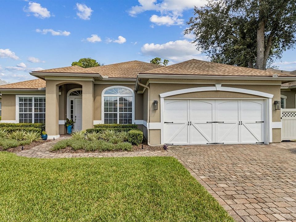 Thoughtful upgrades provide lasting peace of mind: new roof in 2023, HVAC replaced in 2018, water softener, hurricane shutters, many of the windows replaced in 2019-2023 and a garage with a utility sink and smart storage. Enjoy a bright and airy ambiance with extra high ceilings, crown molding throughout, and an easy flow to the large screened lanai. The private, partially fenced backyard even offers room for a pool.