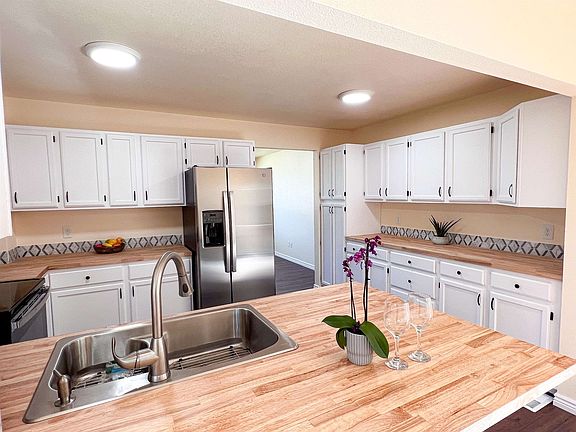 This Full Remodel- has 2 Full Kitchens, 2 Living Rooms, 4-bed, 2-bath, 2-car garage plus RV parking. Renovation Includes: • NEW ROOF Jan 24' • Brand-New Appliances in Both Kitchens & New Samsung Flex Washer/Dryer package • New Counters & Cabinets • Fresh Texture & Paint throughout • All New Baseboards, Doors, Trim, Vent Registers, & Outlets/Switches Covers • New -Flooring, Windows, & Sliding Glass Door • New Tile, Tub, & Vanities • ALL NEW Fixtures & Hardware- incl lights, fans, faucets, sinks, doorknobs and more… • New Water Heater & Garbage Disposal Outside: • Fresh Paint • New Stairs & Deck/Landing • New Garage Doors & Downspouts • New Sprinkler Heads and Valves • New Lights & Vents Landscaped w/ Sprinkler System on a Spacious Lot, all without HOA restrictions.