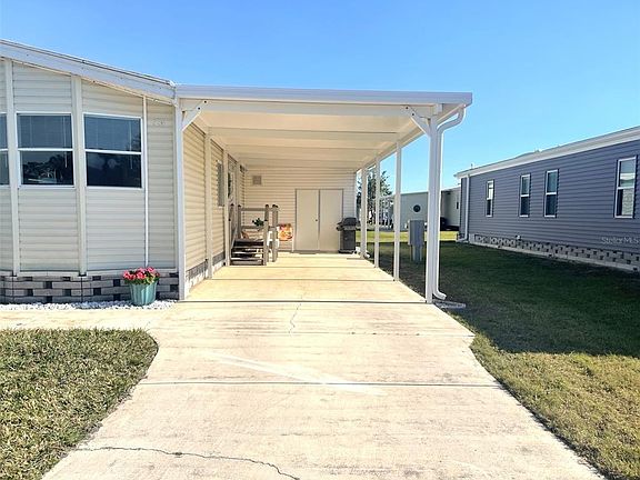 Nicely maintained 1994 home in the premier retirement community of Harbor Isles. Land owned, pet friendly, with resort like amenities and a myriad of activities year round. There is a marina with boat slips, boat launch, fishing station, Canoe/Kayak storage and launch, pavilion and an active boat club. Updates include New plumbing 2025, Carport and shed 2024, Hot water heater 2024. A/C 2018. The roof is membrane, replaced 2007 and in great condition. The home has lovely laminate throughout the living area. The kitchen is bright and enjoys a new range, new sink and faucet. The primary bedroom is large with an an ensuite bath and good size closet. The guest bedroom is spacious with room to add a comfy chair for reading and just steps away from the guest bath. The floorplan is open and great for entertaining or quiet evenings. For more elbow room you have direct access to the Florida room through sliding doors from the living room. Another nice space with more seating. The curb appeal is welcoming and the carport has plenty of room for a vehicle and golf cart. The home is being offered furnished. Harbor Isles is convenient to beaches, shopping, dining, Atlanta Braves ball field, downtown Wellen Park, Sunseeker Resort, golf courses, entertainment, interstate, airports and more. Call today for your personal tour!