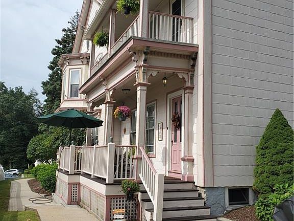 The Albert E. Greene House (circa 1876) in the historical end of Woonsocket has many architectural details in place. The front entrance features a three-story spiral mahogany staircase, tin ceilings. Original hardwoods, two marble fireplaces in both dining rooms. First floor has formal living room, dining room, den, two beds, kitchen, pantry and bath. Owner's townhouse unit includes five beds, and two baths with original clawfoot tub. House has over 5,000 sq. feet which can easily be converted to a single-family residence. Many updates include hardwired smokes, separate utilities and gas heat. No FHA, being SOLD AS IS!