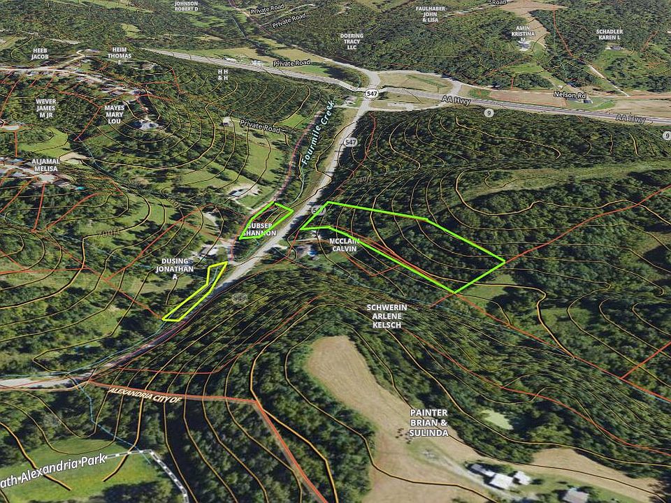 5.955 Acres of prime Alexandria land located just off AA. two parcels included on both sides of 4 mile Rd and Riley Rd with creek and road frontage. Just down the hill from all that Alexandria has to offer but just far enough to experience rural privacy country living. Property is raw land waiting for your vision of what it could be. Build your new home or own a slice of Campbell county Hunting land just minutes from home. Currently being used as productive hunting and recreation Land.