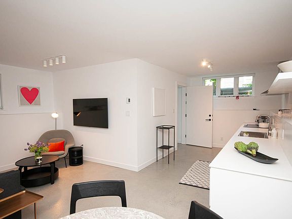 FURNISHED 800 sq. ft. studio, 1-bath suite in the heart of Vancouver's vibrant Strathcona neighborhood. This modern open-concept home features polished concrete floors, sleek white cabinetry, and ample kitchen countertop space. The living and dining areas flow seamlessly with stylish decor and a cozy sleeping area designed for comfort. The spa-like bath includes a glass-enclosed shower and matte black fixtures. Located near Commercial Dr. and False Creek, with cafes, restaurants, shops, parks, and transit all within walking distance. Perfect for a single professional or couple seeking a bright, contemporary home in a lively community. Rental includes: Heat, hot water, gas, electricity, Internet, and bi-weekly cleaning. Pets upon approval. No access to onsite laundry and street parking only