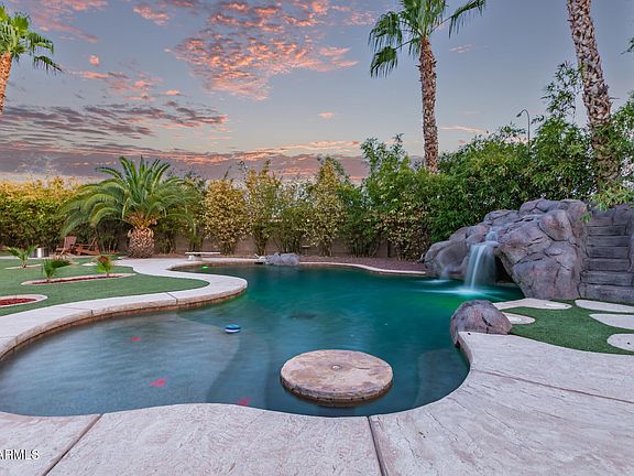 Rare Gem in Chandler, AZ with massive resort style backyard, 4-bedroom, 2-bathroom home in the desirable Carino Estates! This spacious residence sits on an expansive corner lot, offering unparalleled privacy with lush bamboo-lined walls. Dive into luxury with a tropical backyard featuring a diving pool complete with a slide and grotto, perfect for endless summer fun. The property boasts a basketball half court, an RV gate, and a 10x14 storage shed with a brand-new roof. The oversized side yard is ideal for a playground or trampoline, providing ample space for outdoor activities.