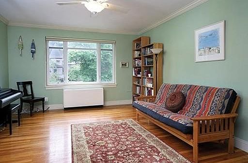 Crisp and cheerful top-floor condo with 2 large bedrooms, 1 full and 1 half bathroom, in-unit laundry area, and parking, all in a fabulous central location! This bright and roomy end-unit penthouse condo offers 3 exposures and tree-top views! The open layout features a large living room and dining room right off of the kitchen. The graciously sized master bedroom has two closets and an en suite half bathroom and laundry area. The second bedroom is also well-sized and has a double-wide closet. Additional features include air conditioning, crown molding and updated doors, updated light fixtures and ceiling fan, double-paned Anderson windows (2012), newer refrigerator (2013), additional storage in the basement, and assigned parking space next to the building. There is also common green space outdoors. Centrally located and close to Washington Sq., Coolidge Corner, Brookline Village, Griggs Park, public transportation, and both Driscoll School and the high school.