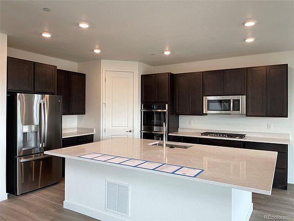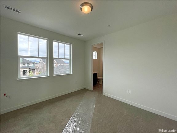 Move in Ready**Special Financing Available, including below market rates**Gorgeous 5 bedroom 4.5 bathroom Prescott Floorplan. The main level boasts an open layout and is saturated in EVP flooring! The gourmet kitchen has a large eat-in island with soft close cabinets, pantry, quartz countertops and double ovens. The 2-story great room makes the layout feel open and bright and includes a gas fireplace. There is a private office on the main level next to the 1/2 bathroom. Guests can enjoy a main level bedroom with en-suite bathroom. Upstairs has your large primary suite with en-suite spa style bathroom with dual vanity, large shower and walk in closet. The laundry room is conveniently located by the bedrooms and also connects to the primary closet. The 2 additional bedrooms are connected to the Jack N Jill full bathroom. Additionally a guest bedroom with en-suite full bathroom. The basement is unfinished waiting for your personalization. Some additional features include Solar, HUGE covered rear deck and a 3 car garage! Come see everything Erie has to offer with it's small town feel, majestic mountain views, 63,000sf community center and 20,000sf community Library! Close to shopping/dining, trails and parks.