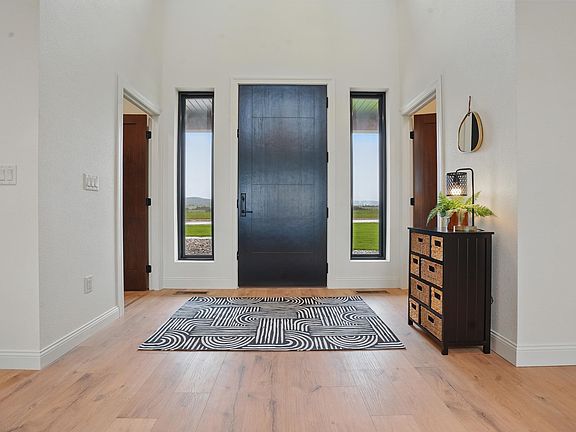 High ceilings, light-filled spaces, and an effortless flow — this brand-new, zero entry, custom home was built for the way you live today. Every detail was thoughtfully designed and carefully crafted, by Collins Contemporary Homes, from the custom cedar accents inside and out to the high-end finishes throughout. Offering nearly 2,900 sq ft of polished, single-level living, this 4-bedroom, 4.5-bath home blends style & functionality seamlessly. Step inside to a bright, airy living room where 18-foot ceilings and expansive windows bring in natural light from every direction. A sleek Napolean 50” gas linear fireplace creates a perfect gathering spot for cozy mornings or lively evenings. The kitchen is a true centerpiece: custom two-tone cabinetry, toe-kick lighting, FreePower wireless charging station, oversized island, and a full suite of built-in appliances. Can't choose between granite and quartz countertops? This home has both! The walk-in butler’s pantry adds storage, complete with bonus shelving and a sink for effortless meal prep while entertaining. All 4 bedrooms feature private ensuite baths and walk-in closets. The primary suite feels like a retreat, with soaring 15-foot ceilings, a spa-inspired bathroom, spacious walk-in closet that doubles as a dressing room, a separate lavatory, and a smart layout that leads directly to the laundry room. Everyday luxuries include wide plank 20-mil wood laminate flooring, tankless water heater, solid core interior doors, custom tiled showers, Cat6 wiring, and a practical mudroom off the main-level laundry. The oversized, heated 3-car garage with 8' doors is ready for your vehicles, hobbies, and gear. Step outside to the covered stamped-concrete patio—gas line ready for your grill or firepit—and enjoy the fully landscaped .37-acre lot, complete with an underground sprinkler system and signature cedar details that set this home apart. In Highpointe Ranch, you’re close to everything but still tucked away. Make this home yours!