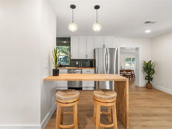 Fully Renovated in August 2025 – Modern Design Step into this beautifully updated 4-bedroom, 1-bath home in Northwood Pines, offering approximately 1,717 sq. ft. of living space. The heart of the home is the redesigned kitchen, featuring butcher-block counters, new cabinets , beautiful tile finishes, all brand new stainless steel appliances, a high end LG fridge, and a stylish, functional layout perfect for cooking and entertaining. The house has been completely transformed with all new renovations completed in August 2025. The renovations bring thoughtful updates throughout: in addition to the incredible kitchen is a spacious primary suite, refreshed bathroom, new flooring, modern fixtures, and enclosed garage and dining / entertaining room that expand the living area. Outside, enjoy excellent curb appeal with a new driveway, walkway, landscaping on a timer system, and privacy fence. A shaded front patio creates a welcoming space for morning coffee or relaxing evenings. Tucked away on a cul-de-sac yet just minutes from shopping, dining, schools, and parks, this property offers the perfect balance of convenience and style. Roof is in excellent shape & approximately 10 years old. Owner is a licensed real estate agent in the state of Florida.