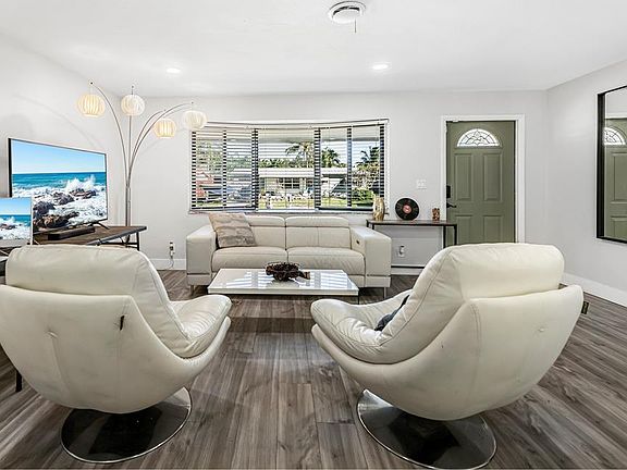 TURN KEY HOME ready for you! Charming and fully remodeled 2 bedroom, one bath home with open living concept and modern upgrades throughout. This beautifully updated home features newer roof, impact windows, fresh paint, new baseboards, stylish new floor, sleek recessed lighting. The kitchen boasts brand new cabinets and fridge while the renovated bathroom offers a contemporary feel. Enjoy waterfront living with direct cancel access and a brand new dock - perfect for boating fishing or relaxing by the water. Move in ready and waiting for you.