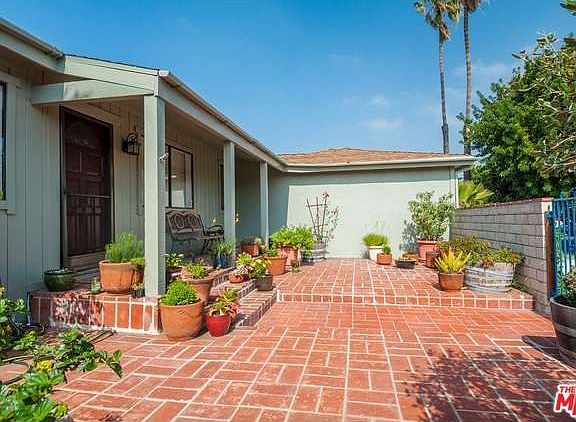 A charming gated front patio leads you to a very private four bedroom, plus family room, two bath home. The large great room features hardwood floors, a brick fireplace and a vaulted ceiling, with access to the private back decked area. The master suite features a vaulted ceiling, plenty of light, and access to the backed decked area. The master bath was remodeled with a tiled shower and tiled vanity. The kitchen features new cabinets, new counter tops, and stainless steel appliances and a new tiled floor. The three good sized bedrooms are at the front of the home, and share a remodeled full bath. A large double car garage also allows room for three cars to park on the driveway. No grass!...but attractive low water, low maintenance front yard, plus a very charming side yard with an apricot tree and a Eureka lemon tree. Quiet street, minutes to freeway, Loyola Marymount University, Silicon Beach and Playa Vista.