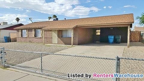 YOUTUBE VIDEO click here https youtu.be/o19TsxEzQbU This 3 bedroom 2 bath is ready to call HOME now! Ceramic tile throughout. Included like new appliance package. Two-tone paint. Full length mirror closet doors. Master bathroom has upgraded stand up shower and pedestal sink. Lots of closet space. Hugh storage room fits a washer or you can add stackable washer and dryer inside. Call Jason at www.RentersWarehouse.com at 602-529-8299 to schedule a showing today!