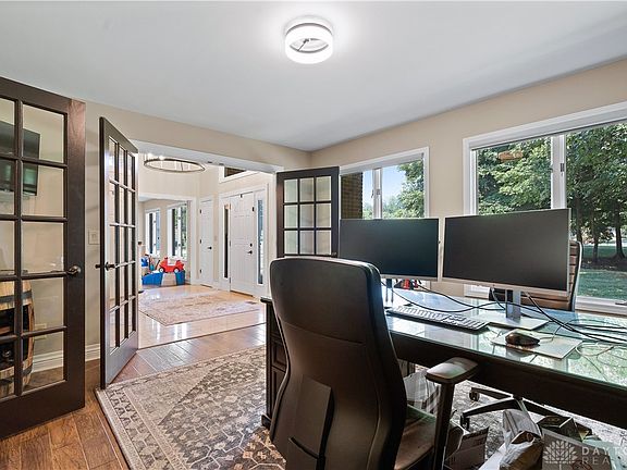 This absolutely stunning 5bed/5bath custom home situated on 2+ wooded acres in Springboro Schools (Clearcreek Twp) is the one you've been waiting for! You'll immediately fall in love with the breath-taking two-story entryway and elegant staircase! A bright, sunny office complete with classy french doors and wood flooring is to your left, while a formal dining room (currently used as playroom) is to your right. The family room, located at the back of the home features a beautiful brick wood-burning fireplace, built-ins and a wall of windows with an amazing view of the wooded backyard! The expansive kitchen features granite counters, stainless appliances, and a rear staircase tucked away in the corner! The spacious 1st floor primary bedroom with cathedral ceiling features an en suite bath with stand alone tub, double vanities, a luxurious shower with double heads and rainfall fixture, and dual walk-in closets! This bath comes complete with it's own water heater! The primary suite also includes a peaceful sitting room for enjoying your morning coffee! 1st floor laundry and a half bath round out this level! On the second floor you'll find 3 additional bedrooms, 2 with adjoining full baths and double sinks! A second floor bonus room completes this level as the perfect place to play or watch a movie! The THIRD floor has another bedroom or rec space with a 4th full bath! Outside, you'll enjoy playing in the amazing pool with retractable cover and multi-color lights, relaxing in the hot tub or just spending time lounging on the paver patio or deck! If walking through the woods is your thing, you will love this lot! The 2.12 acres extends quite a ways beyond the pool area and includes a creek for exploring! This home truly has something for everyone to enjoy!