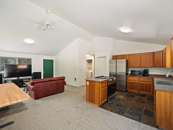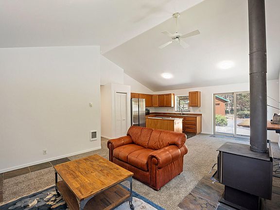 Sunriver Area Custom Home Back US Forest Land! Perfect full time OR short term rental property in a beautiful setting w/wonderful forest views, 2Bd/1Ba, Great Room w/certified wood stove & forest views, open dining/kitchen w/new SS appliances & wood-lam floor, hall bath w/slate tile floor, laundry w/washer & dryer, all new carpets& slate tile flooring throughout the home, big Hot Tub, covered porch w/log post accents for a great rustic feel, Detached 1+ car garage!