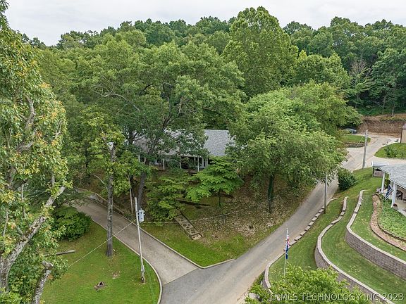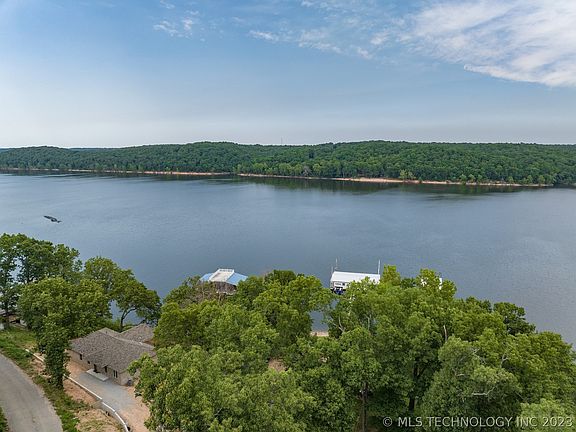 Lovely setting in the trees w/ water views of Downing Creek on Grand Lake, well maintained, open floor plan w/ gorgeous views of lake. Covered patios, professionally landscaped, oversized garage w/ bath, hobby room & abundant storage, 1 year roof.