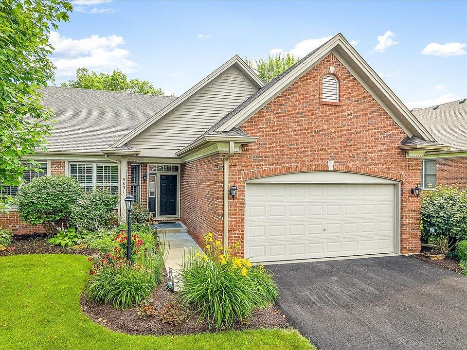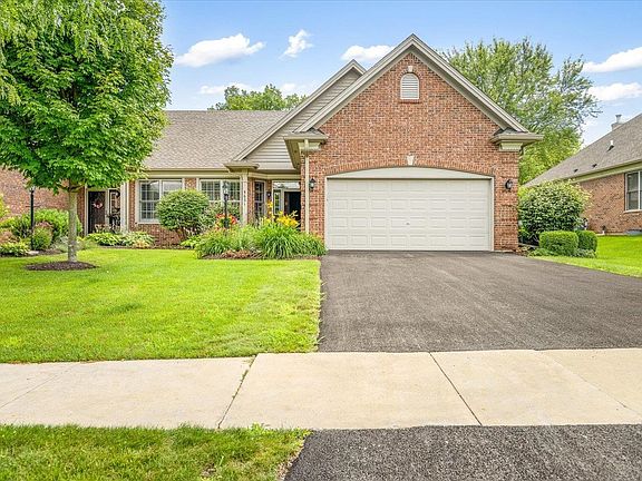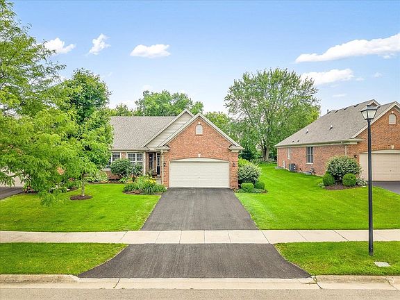 STUNNING RANCH CONDO! Hickory hardwoods, thick, white trimwork throughout, 6 panel solid wood doors. Custom stair railing (by Rockford Ornamental Iron, Inc.) 3rd bedroom has French doors- currently being used as home office (no closet). Updated, remodeled kitchen in 2019 with white cabinets, subway tile backsplash, gorgeous Dolomite counters from Benson Stone), newer SS appliances including counter-depth refrigerator. Living room features custom built-ins, custom mantle, new tile surround on gas fireplace, new fireplace door. TV mount has hidden shelving unit for wires (flat screen TV doesn't stay) Plantation style shutters in the kitchen and bedrooms as well as all drapes stay. HUGE primary bedroom with bay windows, ensuite bath, double bowl sinks, walk-in closet. First floor laundry. Lower level is finished with supplemental radiant heat. Deck has been completely replaced, stained in 2025. New furnace and central air (2022). Roof new in 2020. Garage drywalled, newer epoxy floor (2024). New driveway (complete tear out- 2025). Driveway will be sealed in 2026 per the association. Backs up to green space which has been lovingly landscaped by current owner (bench doesn't stay). This one is too good to miss!