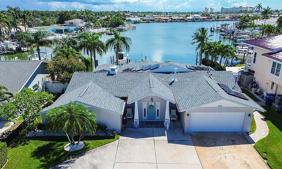 DON’T MISS THIS BEAUTIFULLY UPDATED WATERFRONT HOME! Located in a desirable Pinellas County neighborhood, this property offers direct water access and has been completely remodeled inside and out in (2024), with Arguably one of the BEST backyard Views on the street! Step inside to find all-new tile flooring, fresh drywall, a brand-new kitchen with new appliances, fully renovated bathrooms, and fresh paint throughout. This home comes equipped running on natural gas and includes a fireplace (gas). Other major (2024) upgrades include a new A/C system with ductwork, new garage door, new pool filter with heated system, Tankless water heater, and a Whole-house (gas) generator powerful enough to run the entire home, including the A/C. The exterior was also freshly painted in (2025). For added value and peace of mind, the roof and solar were replaced/Installed in (2018) SOLAR TO BE PAID OFF AT CLOSING, Hurricane-rated windows and sliders were installed in (2018), and the home is equipped with a NEWER dock and a (12,000) lb boat lift for easy access to the water. This property did experience minor flooding during Hurricane Helene in 2024 however, the neighborhood had never flooded prior to that event. Since then, the home has been fully restored with high-quality updates, making it truly MOVE-IN-READY. Schedule a showing to view today!