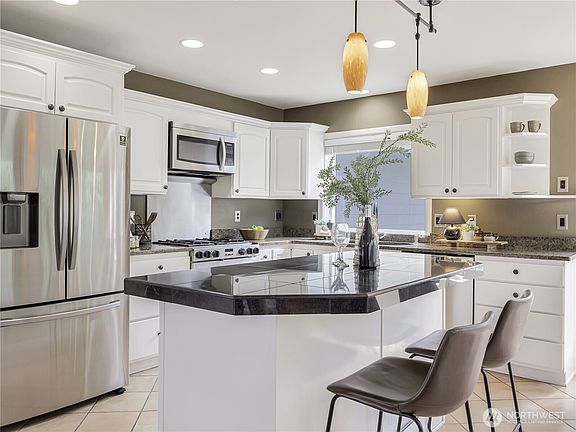 This impeccably maintained 3-bedroom, 2.5-bath with office, home offers the perfect blend of comfort and functionality. The open-concept main floor features a modern kitchen with granite countertops, stainless steel appliances, and a seamless flow into the inviting family room, complete with a cozy gas fireplace—perfect for relaxing or entertaining.Upstairs, the spacious primary suite offers a spa-like retreat with a luxurious en-suite bathroom.A versatile flex space provides partial Sound and mountain views, perfect for a home office, playroom, or reading nook. Additional highlights include a 3-car garage and a fully fenced backyard with an irrigation system. Newer furnace with A/C to ensure yearround comfort are just some of the upgrades.