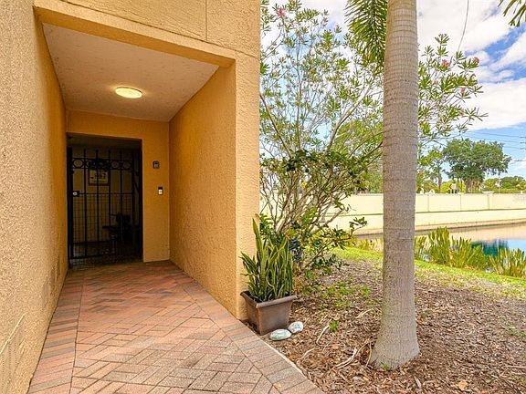 What an opportunity to own one of the best units in Sea Forest Beach Club. This is a Gated community in the heart of Gulf Harbor - Sea Forest waterfront neighborhood. This rare end unit overlooking the pond has no side and no rear neighbors. It is the largest floor plan at 1720 square feet, 3 bedrooms and 3 full bathrooms. The home has a private gated courtyard entry which is completely tiled. On the first level there is high end enclosed bar area with refrigerator and an outdoor bar counter for entertaining in the beautifully landscaped - brick paver courtyard which is privately fenced. The 2nd floor is flooded with light from additional side windows with an open floor plan living room - dining room and kitchen with eat at counter. The ample bedroom/ den and full bathroom complete the 2nd floor. The third floor features the two master bedroom suites with walk in closets, 2nd bedroom with walk in closet and full bathroom and true master ensuite which has coffered ceilings, walk in closet, large corner tub/shower, heated towel bars and linen closet. True laundry room with good storage. Other features include surround sound, additional storage closets on every floor, volume ceilings, crown molding, brand new dishwasher, new washer and dryer, new oversized AC in 2016 with transferable warranty, luxury plank waterproof vinyl flooring throughout, upgraded 4" baseboards, finished garage floor, rented water softener. Elevator shaft is in place for an easy elevator install. Maintenance free living with 2 community swimming pools, work out room, dog park and it includes access to a beautiful private community beach on the Gulf of Mexico in Gulf Harbors. The Beach features cabanas, outdoor showers, grills, beach volleyball and gorgeous sunsets. Ten minutes to historic downtown New Port Richey, shopping, dining and micro-breweries. I know this is said all the time - but you must see this property to appreciate all the upgrades! BACK ON MARKET, BUYERS FAILED TO MEET CONTINGENCIES.