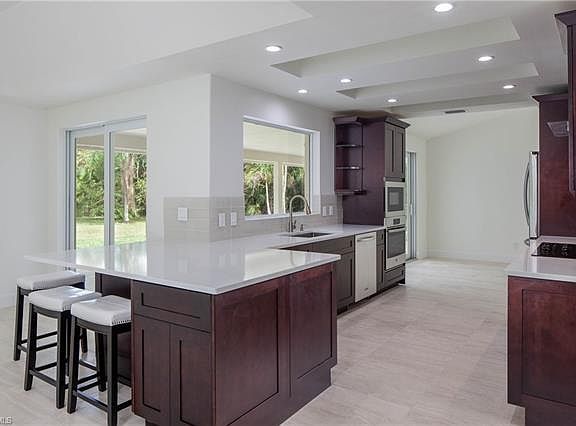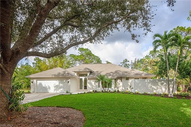 Totally remodeled Oakes Estates home on 4.36 Acres!! This impressively stylish gem is a home that brings nature's beauty of the outside to the inside with an abundance of of windows and natural light. With charm and elegance it includes features such as: new Italian porcelain tile throughout, newly designed kitchen and baths with custom solid wood cabinetry and quartz countertops. The master bath has over sized walk in shower, multiple shower heads and a double outdoor shower to provide spa-like ambiance. Concrete block construction with a brand new roof and a transferable lifetime warranty, all new impact windows/sliding glass doors and a state of the art Lennox 20 SEER variable speed A/C with updated ductwork. Also includes newly installed LED recessed lighting throughout and all new plumbing & light fixtures. Property has two wells, one for the home and a separate well for the irrigation. Property has a feeling of the botanical gardens with a beautiful oak lined driveway and mature fruit trees including: Meyers lemon, mango, avocado, Jamaican cherry, lychee, lime, mulberry and tangerine trees.