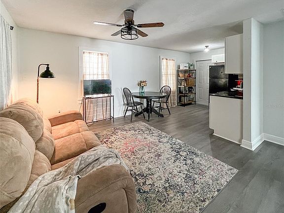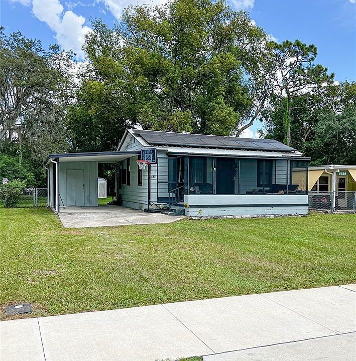 Charming bungalow in Zephyrhills! This delightful retreat has been thoughtfully updated while preserving its timeless charm. The classic low-pitched roof and welcoming front porch invite you inside, where an open-concept living space blends comfort and character in perfect harmony. Luxury vinyl flooring extends through most of the home, creating a seamless sense of flow and harmony from room to room. White cabinets, topped with granite and accented by a subway tile backsplash, create a bright and timeless kitchen you’ll love gathering in. The bathroom features upgrades such as tile flooring, a tiled shower/tub surround, and an updated vanity. The primary bedroom is bright and airy, with a ceiling fan and windows on two walls that welcome abundant natural light. Like the primary, the second bedroom features windows on two walls, creating a cheerful, light-filled retreat. Currently serving as a generous pantry, the finished enclosed porch offers flexible space that could become a hobby room, home office, or tacit bedroom with the addition of A/C, and it conveniently includes washer and dryer hookups. The spacious screened front porch offers the perfect spot to unwind with your favorite drink and enjoy the day. The carport provides covered parking and includes a handy utility room with a second set of washer and dryer hookups, perfect for added functionality. The spacious, mostly fenced backyard is perfect for outdoor living and play, with a utility/storage shed adding convenience and versatility. Other notable features include a long-lasting metal roof, solar energy panels for efficiency, and a newly installed A/C, combining modern convenience with peace of mind. Enjoy the best of Zephyrhills living, with this home’s prime location providing easy access to the city’s many amenities. Just minutes away, you'll find Hercules Park, Zephyr Park with its popular Waterplay splash pad, the Zephyrhills Library, Krusen Skate Park, and a variety of other recreational amenities. Schools, shopping, a theater, a bowling alley, and dining options are all conveniently nearby - making this home as practical as it is appealing. Plus, with no HOA or CDD fees, you'll enjoy the freedom and affordability that come with true homeownership. Whether you’re starting out, settling down, or looking for a low-maintenance Florida home, this one checks all the boxes. Let’s get you through the door. Schedule your private showing today!