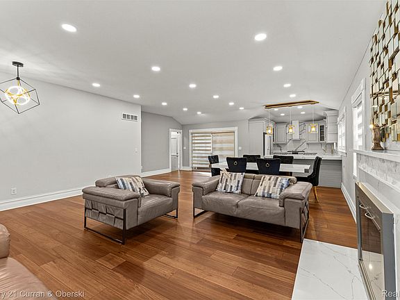 Gorgeous & very nicely updated 3 bedroom 2 1/2 bath brick ranch updated 2022 on a wide 75ft lot! Newer finished basement with family room with natural fireplace, basement kitchen, bonus room & updated full basement bath 2023, large living room with fireplace, updated kitchen with granite counters, breakfast bar, dining area, open floor plan, updated first floor half bath 2023, large bedroom sizes with custom closet shelving & special order doors, hardwood flooring, updated first floor full bath with skylight 2023, high ceiling, new roof 2023, large covered deck off back of home - could be converted into additional 240 sqft, 2 car garage, large covered front porch, great curb appeal, home is close to Dearborn Golf Course, along with many other shops & restaurants, Dearborn School District, Certificate of Occupancy ready, all data apx.