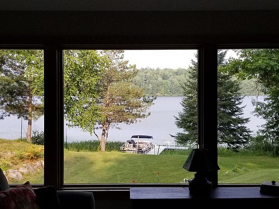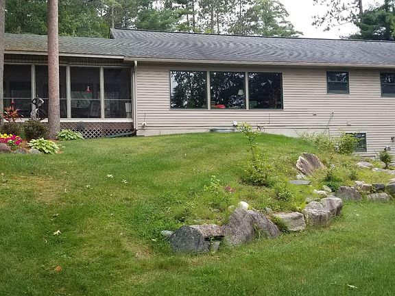 Charming Northwoods Retreat on Hughitt Lake. Stunning property boasts 21 acres of natural beauty and over 1,800’ of lake frontage, offering unmatched privacy and breathtaking views of this very lightly developed lake. Open concept living, spacious great room, vaulted ceilings, a stone fireplace & abundant natural light, recently updated kitchen with quartz surfaces. 3 bedrooms and 2 baths. Three-season sunroom and a walkout LL ensure you can enjoy the surrounding scenery year-round. The exterior is equally impressive, with extensive landscaping, lush gardens, decks, a firepit, & charming trellises, perfect for outdoor entertaining or quiet moments of reflection. The property also includes multiple garages & extra storage, catering to all your practical needs. Enjoy the best of both worlds with convenient seclusion—a true escape into nature without sacrificing accessibility. Don't miss this rare opportunity to own your slice of paradise!