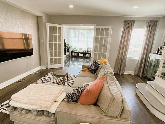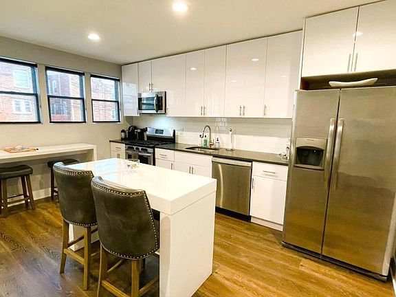 This is a spacious 3-bedroom, 2.5-bath, completely renovated home with an open concept and central air. It is located in the highly desirable neighborhood of Wynnefield. This house brings to you hardwood floors throughout, a marvelous kitchen, and an extensive amount of natural light. The modern kitchen has a deep sink, a garbage disposal, a dishwasher, an overhead microwave with a built-in fan system, a large refrigerator, and a gas range. The house offers private laundry, a finished basement, and two parking spots included in the garage. This home is close to restaurants, shopping, public transportation, and the city center.
