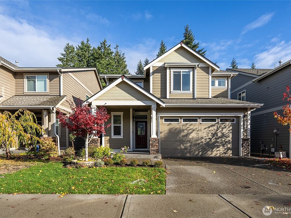 Beautiful Rob Rice two-story backing to a private greenbelt! This 2,532 sq ft home features 5 bedrooms and 3.5 baths. Enjoy hardwood floors, white millwork, slab granite, gas fireplace, and new Bosch stainless appliances with GE washer & dryer. Main-level Jr suite with full bath is perfect for guests or a home office. Upstairs, the primary suite offers a 5-piece bath and walk-in closet. The large 5th bedroom can double as a bonus room. Covered front porch and back patio are ideal for year-round relaxation, A/C for warmer days. Great neighborhood and schools!