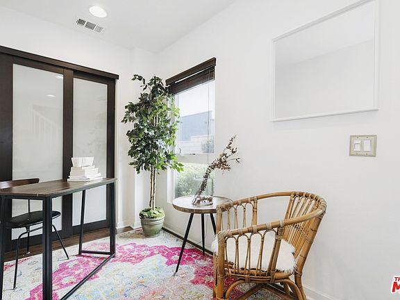 Stunning 3-level exterior row town home, with rooftop patio, centrally located just off Hollywood Blvd in a well maintained private community with low HOA dues. This modern 2014 built property is move-in ready and has unobstructed views from many areas and features 2 spacious master bedrooms, 2.75 bathrooms as well as a bonus/office space. You can enter through the attached 2-car garage on the main floor. The 2nd floor living area has an open lay-out with kitchen open to dining room, living room and bathroom. The 3rd floor features bedrooms with ensuite bathrooms, as well as the laundry closet in hallway. The 4th floor rooftop patio is where you can enjoy quiet evenings, entertain and enjoy the Hollywood Hills views. Everything you need at your fingertips! Walking distance to Metro, shopping, restaurants, cafes, hiking spots and many other neighborhood favorites.