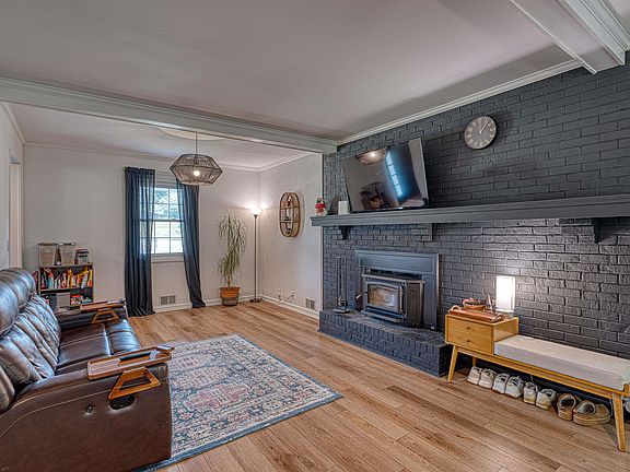 Nestled on a sprawling lot with no backyard neighbors, this stunning home is the perfect blend of timeless charm and modern elegance. From the moment you arrive, the inviting covered front porch sets the stage for the warmth and beauty found inside. Step into the formal living room, where a large picture window fills the space with natural light, complemented by fresh paint, stylish light fixtures, and a welcoming atmosphere ideal for both everyday living and entertaining. The adjacent dining room provides plenty of room for memorable gatherings, while the centrally located kitchen shines with sleek granite countertops, stainless steel appliances, and a brand-new dishwasher. Hosting is effortless with a main-level full bath—perfect for guests enjoying the in-ground saltwater pool! The sunken family room offers a cozy retreat, complete with a charming window seat, luxury vinyl plank flooring, and a wood-burning insert for those cooler evenings. Step through the breezeway to enjoy your morning coffee or unwind in the evening by the exterior fireplace. Upstairs, discover five generously sized bedrooms. The luxurious owner’s suite is a true highlight, featuring a serene sunroom overlooking the spacious, fenced-in yard—a perfect spot for morning reading, nurturing plants, or simply relaxing. The spa-inspired en-suite boasts a custom tiled walk-in shower, double vanity with solid-surface counters, and even a towel warmer for ultimate comfort. Additional bedrooms offer large closets, while the third full bath has been thoughtfully refreshed with modern touches and a tub/shower combo. Outside, your private backyard oasis awaits. The beautifully maintained saltwater pool invites endless summer fun, while the backdrop of mature trees ensures privacy and tranquility year-round. This terrific home offers it all—location, curb appeal, modern updates, and your very own resort-style backyard.