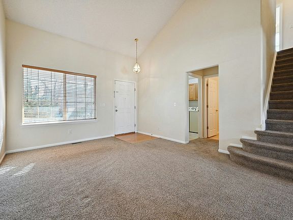 Gas fireplacePrivate deck accessLandscaped backyardCovered front porchExpansive primary suiteVaulted ceilingsStainless steel appliances