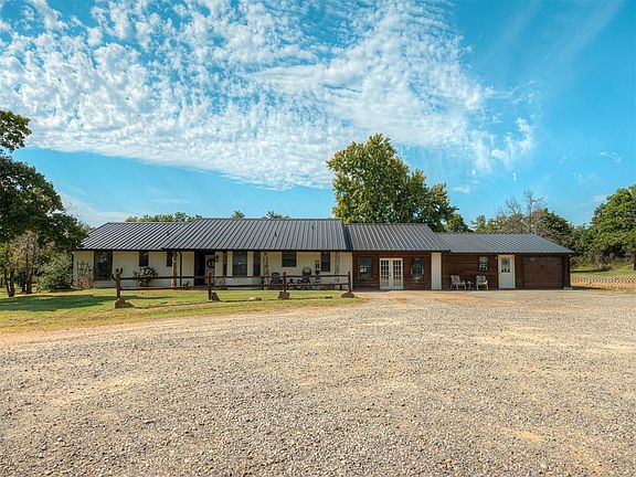 This beautifully updated ranch-style home combines modern comfort with cozy charm. New HVAC and hot water tank (2025). The spacious open layout welcomes you in, perfect for family living or entertaining. Start your day with sunrises on the big front porch and end it with sunsets from either of the two covered back porches. The laundry room offers plenty of space and connects the garage/workspace conveniently to the kitchen. The attached extra living quarters features a kitchenette, bathroom, and bedroom which offers great flexibility for guests, extended family, or even a home business. Garage space between the two spaces has plenty of room for storage and an above ground storm shelter. All of this sits on 5 scenic acres with plenty of room to roam. Come see it for yourself!