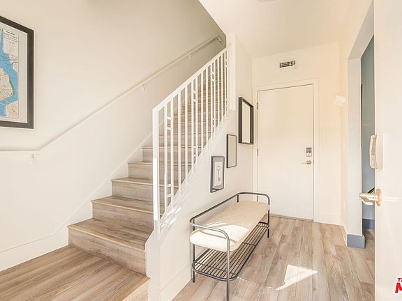 Experience refined living in this stunning, contemporary home, where design, comfort, and efficiency come together in perfect harmony. This highly secure gated multi-level beauty has it all. Featuring a first floor den perfect for home theater or an office with a direct entry, epoxy finished floor, two car garage. The second floor is highlighted by a refreshed kitchen showcasing elegant newer tile, pendant lights with stainless steel appliances. With a substantial pantry that also stores the washer & dryer. Experience volume and scale with high ceilings, and an abundance of natural light creating a seamless space for both everyday dining and stylish entertaining with the comfort and creativity of this oversized space. Upstairs, experience the upgraded engineered hardwood floors that add to the already lavish environment. Tranquil bedrooms perfect for families, guests (or an in-home gym) are a private retreat with abundant natural light, serene energy and a primary walk-in closet. Sustainability meets convenience with paid-off solar panels and whole-home battery storage-- for significant savings and peace of mind. Tesla charger and a new tankless water heater. With its timeless design, thoughtful upgrades, and eco-conscious efficiency, this residence embodies sophisticated California living at its finest. Centrally located with easy access to Shops, Cafes, Studios and Restaurants making this the perfect landing pad for any Angeleno.