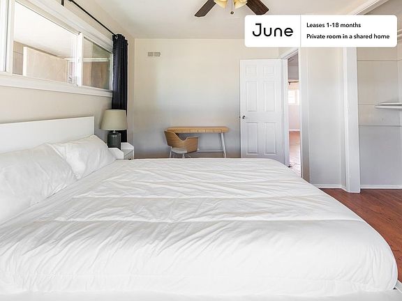 This Queen room in College West is available on a 12 month lease or a flexible short term (31 to 364 days) lease. You pick your custom start and end date. Monthly rent rate is determined by furnishing preference, move-in date and move-out date. Speak to a June representative for recommendations on the best stay duration for the lowest rate.