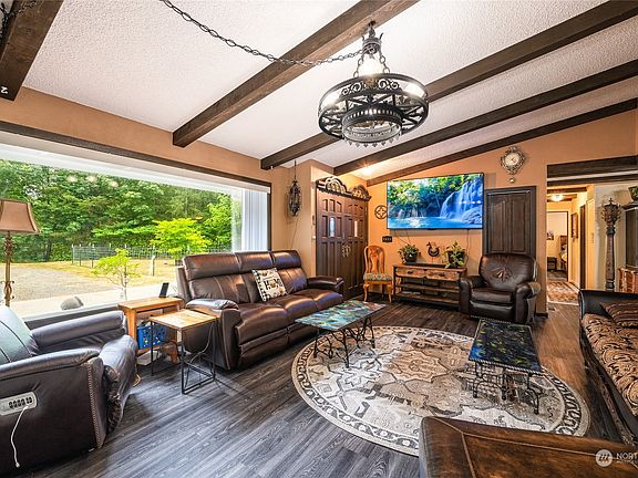 Spacious single level home with daylight basement nestled 400 +/- ft off the road on a private & secluded 4.83 acre lot. This 3616 sq. ft. home features 2 separate living spaces. The main floor is a custom classic rancher style design w/ exposed wood beams & vaulted ceilings, 3 bedrooms, floor to ceiling stone fireplace w/ wood insert along with a open hearth design fireplace in the dining room. The lower level features a kitchen, primary bed/bath, utility room & huge living area w/ fireplace. The home also includes nearly 1400 sq. ft. of multi leveling decking that looks over a heated 12 X 24 salt system pool, 30 X 60 five bay shop & expansive ground w/ fruit trees. The home has been recently updated including new roof, paint & windows.