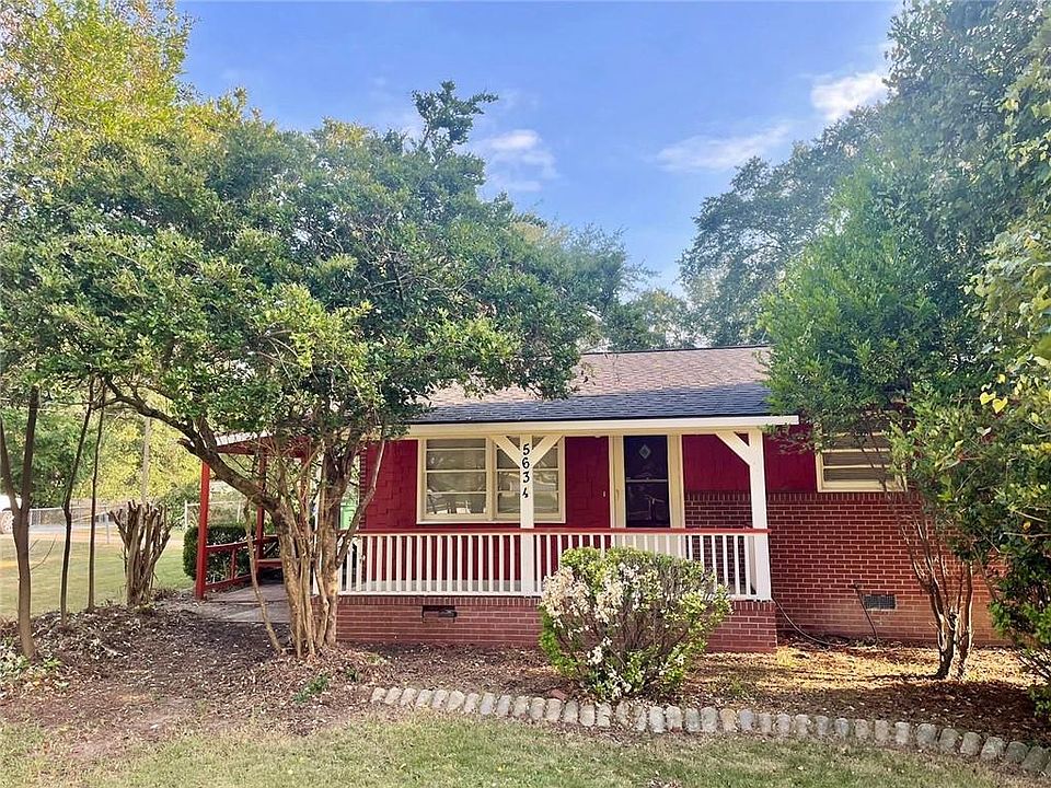 Charming home with welcoming front porch and fenced-in yard. New interior paint throughout. Two bedrooms, one bathroom. Master on main. Hardwood floors in bedrooms. New flooring in living and dining rooms. Tiled kitchen and bathroom.