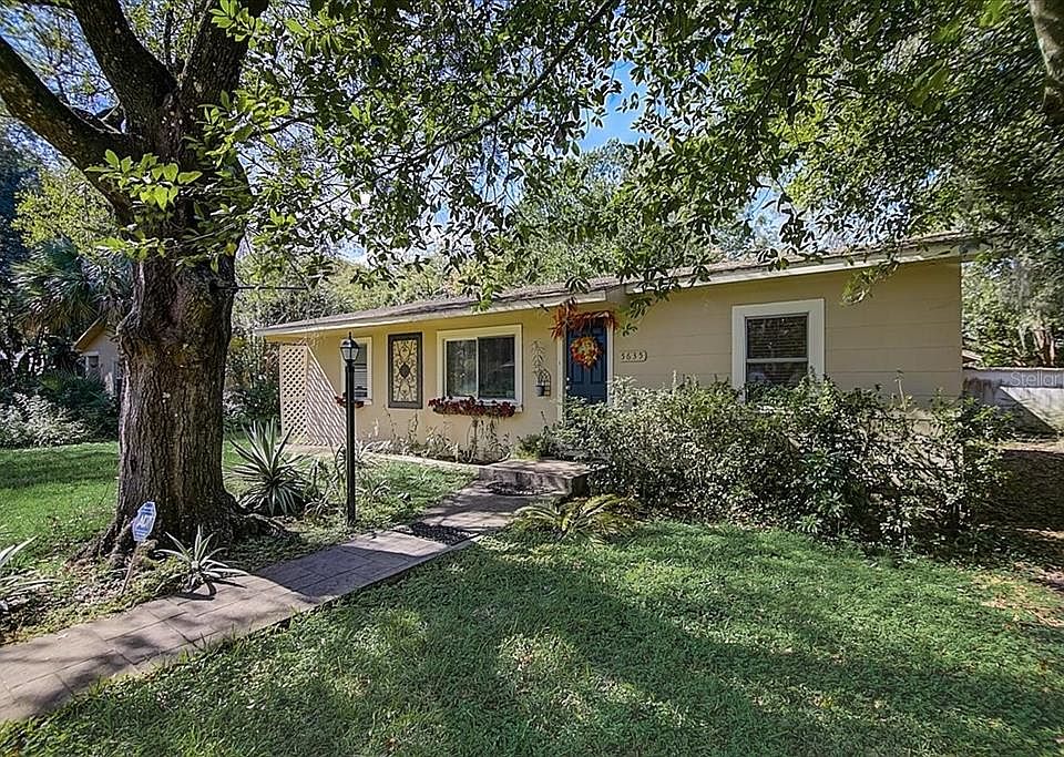 NEW ROOF TO BE INSTALLED PRIOR TO CLOSING WITH ACCEPTABLE OFFER! Absolutely Adorable bungalow filled with charm on an oversized 1/4 lot with mature oak trees to make a beautiful setting! Currently the 1040 square foot home is set up as a 2 bedroom, 1 bath, with the 3rd bedroom used as a family room/den but it is a nice sized room with plenty of options for a game room, family room or bedroom, whatever suits your needs. As you enter the home into the formal living room, you can feel the love and charm the home offers. The main 2 bedrooms and nicely updated bath with tub/shower are at the north side of home and offer nice privacy. Off the back of the living room is the beautiful and spacious updated newer kitchen with plenty of cabinets and countertops and all appliances included. Formal dining room off kitchen with lots of natural light flowing through and it leads out to the screened in lanai that is the perfect place to enjoy your morning cup of coffee. The backyard offers plenty of space for a pool, plant a garden for your own fresh herbs and veggies, and the former carport has been closed in to make a great storage room, workshop, or finish it off a bit more to have additional living space, as there is a bathroom with toilet, sink and shower plus a room off the side of the structure that could possibly be more living space and potential additional income, too many possibilities here to have some fun with this property! Driveway access is through the rear side of property for homes and keeps the front yards open and clear of clutter. HVAC is only 5 years old and the home is move in ready with nice neutral paint. Location cannot be beat with all the growth and development in the area with the Historic Downtown area, Wesley Chapel booming as the neighboring town which offers the fantastic Tampa Premium Outlet mall that has great stores, tons of restaurants, and entertainment without needing to head to the city of Tampa for those things, it is all within 15 minutes from here! Easy access to head over to Orlando to visit Disney World, Sea World, Universal Studios, or head west to the amazing fine sugary sand beaches of the gulf coast, all within an hour of this quaint community that still has the small town feel!