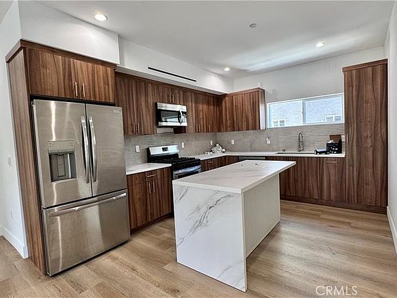Modern 4-Bedroom Townhouse in the Heart of NOHO Arts District. Welcome to this beautifully crafted 4-bedroom, 4.5-bathroom townhouse in the vibrant North Hollywood Arts District. Offering over 1,600 square feet of contemporary living space, this newer construction home combines style, functionality, and an unbeatable location. Flooded with natural light, the open-concept layout showcases clean neutral tones, elegant finishes, and thoughtful design. The chef-inspired kitchen features a large center island, stainless steel appliances, and imported cabinetry perfect for everyday living or entertaining guests. Recessed lighting and an innovative, Google-controlled central HVAC system complement the spacious living areas to ensure year-round comfort. Each generously sized bedroom provides ample storage and privacy, ideal for families and roommates.