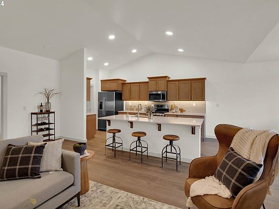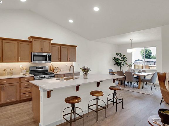 A stunning 2-story home offering 2258 sq ft of modern living space. This new home features 3 spacious bedrooms and 2 bathrooms, designed to meet all your needs. The master suite is conveniently located on the main floor and boasts granite double sink countertops, a generous walk-in closet, and a luxurious atmosphere for relaxation. The main floor also includes a well-equipped laundry room for added convenience. The heart of the home is the gourmet kitchen, featuring a large island, pantry, granite countertops, and stainless steel appliances that are included with the home. The open floor plan concept seamlessly connects the kitchen to the living room, which is adorned with elegant laminate flooring and a cozy fireplace, perfect for entertaining and family gatherings. Additional highlights include a 2-car garage, ensuring ample parking and storage space. The exterior is fully fenced and landscaped, complete with a covered patio ideal for outdoor dining and relaxation. This home is also solar-ready, offering the potential for energy savings. Comfort is guaranteed with gas forced air heating and air conditioning throughout. Don't miss out on the opportunity to make this exceptional property your new home. Schedule a viewing today!