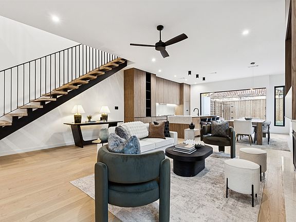 Stunning new construction duplex located in an unparalleled M-Streets location. This home offers the perfect blend of urban living and modern design, boasting an open and airy floor plan that maximizes natural light and expansive space. Upon entering, you'll be greeted by a floating metal staircase, a chic fireplace and mantel, and 7 skylights, all setting the tone for the home's contemporary elegance. The kitchen is a show stopper, featuring a striking waterfall island, custom cabinetry, panel front refrigerator and dishwasher, and under cabinet lighting. The downstairs office, which can be quietly closed off with its unique door system, fulfills all work-from-home needs. The primary bedroom is a tranquil retreat, complete with a en-suite bathroom with a walk-in shower, separate soaking tub, and a custom closet with ample space. The seamless indoor-outdoor flow is highlighted by a three-panel hidden door system, creating a seamless transition to the private landscaped backyard. Here, you'll find a cozy fireplace and a spacious patio, perfect for entertaining or enjoying a quiet evening under the stars. The 2 car garage is seamlessly built into the front facade. Zoned to Mockingbird Elementary and walkable to all of the fun and retail that Greenville offers.
