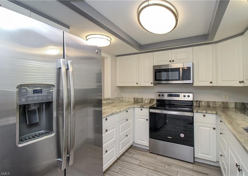 **MUST SEE - COMPLETE REMODEL! **2 BED 2 BATH CONDO**ANNUAL RENTAL**SOUTH NAPLES**GOLF VIEW MANOR II**Complete remodel! Immaculate and spacious 2 bed 2 bath condo! This first floor 2 bed 2 bath condo is spacious with over 1050 sq ft of living space. The kitchen has all new stainless steel appliances and marble counter tops with upgraded lighting. Flooring throughout is a neutral grey wood look tile. Off of the living room is a screened in lanai with tile floor and a stunning view of the golf course and beautiful palm trees. Amenities at Golf View Manor include a community pool and assigned parking space.