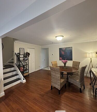 2-level townhouse located inside the Beltway, just off 395, and near the Van Dorn Metro Station. This 2 bedroom, 2.5 bath home is approximately 1300 SF. The eat-in kitchen has a large bay window and the dining room is spacious enough for many guests. The living room provides access to the fenced rear yard. There is a half bath on the main floor. There are two primary bedrooms on the upper level w/ full baths/ tubs. Laundry is on the bedroom level. The fully fenced rear yard with a gate allows access directly to the common yard area shared amongst the neighborhood. Parking spaces are just steps from the front door.