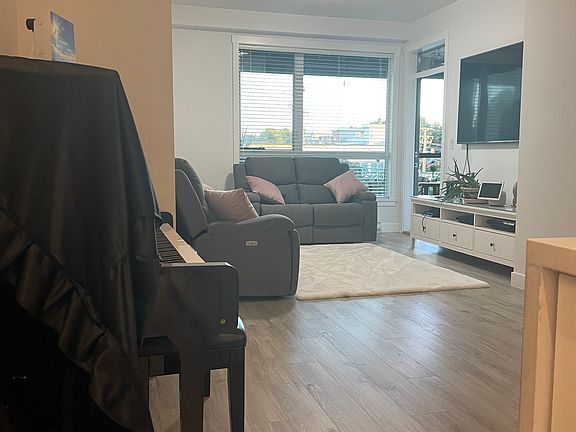 Like new, 2 bedroom one large den and 2 full baths. Featuring a large enclosed Solarium and high ceilings. This beautiful unit is located in the city of Langley right by all the amenities you need or want. Doctors, restaurants, beauty services, transit and schools etc. All withing walking distance of everything, including gym and library. Very close to fast transit to sky train. 5 minutes to Trinity Western University. and Kwantlen University.