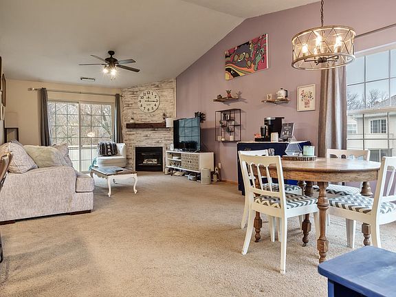 Sharp 2 bed, 2 bath upper condo unit in a great Roscoe location near bike path, library, shopping & highway! Open and popular floor plan with cathedral ceilings and tons of natural light is great for entertaining. Kitchen has counter height breakfast bar area with plenty of seating room. All appliances stay! Master bedroom has huge walk in closet an spacious master bathroom. Second bedroom overlooks backyard. Main floor laundry/storage. Unit offers front and back decks with sliders for a very light & bright feel! Attached garage.