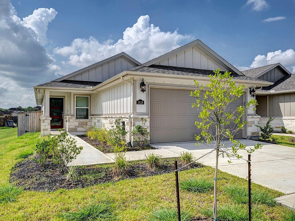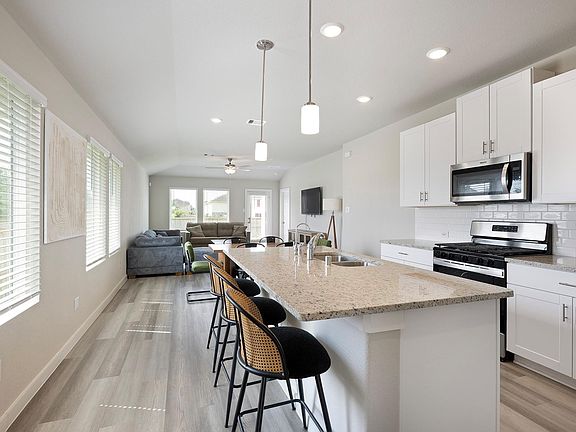 Welcome home to this lightly-lived in 2023 (per HCAD) construction! This rare find features four bedrooms and two bathrooms in a one-story home. The split floorplan provides privacy to the primary suite at the back of the house, while the secondary bedrooms share a bath at the front. The pristine kitchen has stainless steel appliances and a reverse osmosis water filtration system and revolves around the large island which can seat several people. With enough space for a dining area and lots of furniture, the rest of the open concept living space is everything you are looking for.