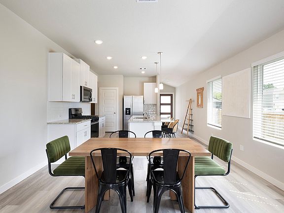 Split floorplanStainless steel appliancesLots of furnitureDining areaFour bedroomsTwo bathroomsLarge island
