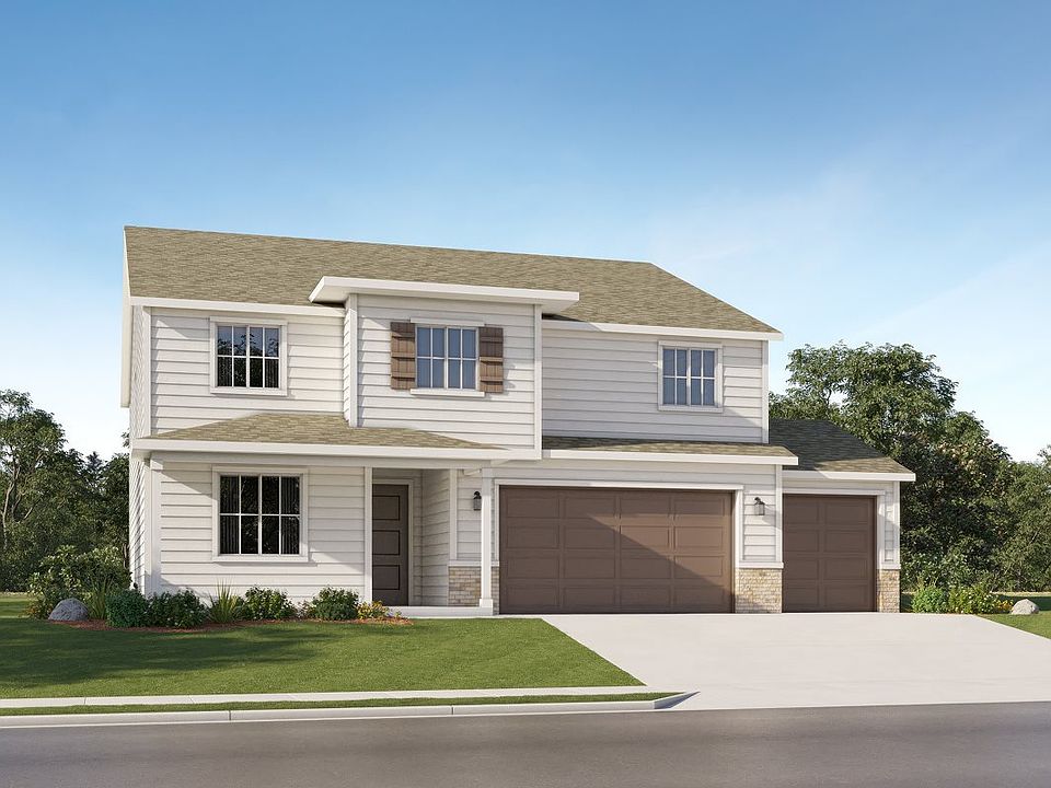 This two-story home has fantastic features, including an outdoor patio, a mudroom off the garage and a versatile loft. A convenient bedroom is located near the entry, leading to an open-concept floorplan that combines the kitchen with the living and dining areas. On the second floor, four bedrooms surround a loft, including the luxurious owner's suite with an en-suite bathroom and walk-in closet.