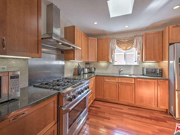 Completely rebuilt in 2006 so this one has it all! Soaring 10' foot ceilings and custom closets bring drama and warmth to the dreamy master bedroom with ambient lighting for a spacious feel. The master bath showcases dual sinks on handsome granite counters, a relaxing spa, a spacious glass enclosed, walk in shower featuring natural stone highlights details. Stunning, contemporary kitchen has custom cherry cabinetry, stainless steel appliances, and granite counters. Outside, unwind and entertain all year long under the wonderful covered patio perfect for hosting spectacular intimate and catered parties! Other features include recessed lighting, wide plank cherry hardwood floors, central air and heat, dual pane windows, closets with custom built-ins. No expense spared when it was created. Located near all the best Sherman Oaks has to offer including award winning Kester Elementary/Magnet school district. This is it!